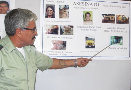 “En una primera pesquisa se encuentra la libreta de notas y el cuchillo con el cual habría victimado este sujeto a Consuelo Vargas. Estos documentos se encontraron en poder de un amigo del detenido, quien habría hecho una transacción con la misma por una deuda que tenía por 2.400 dólares y recupera de ese amigo la libreta y cuchillo. Se colectan elementos hojas sustraídas de la agenda de la víctima de sus deudores lo que quedo en poder de Carlos Giani”, indicó Gonzáles.